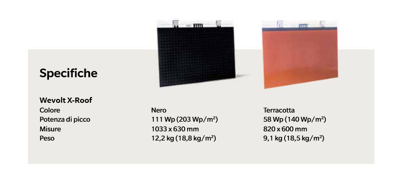 Wevolt è stato sviluppato per produrre energia solare sfruttando l’intera superficie del tetto, con pannelli che si integrano perfettamente nella falda. Grazie alle finiture curate e al colore terracotta, Wevolt non è solo un impianto di produzione energetica, ma diventa parte integrante dell’estetica dell’edificio. La copertura così realizzata è impermeabile, resistente al fuoco e al vento, con prestazioni elevate e un impatto visivo contemporaneo.